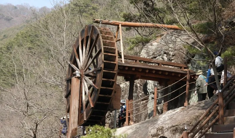 건계정 가기 전 물레방아에서 잠시 숨고르기를 하고 땅도 보고 하늘도 보고 물길도 굽어 봅니다.