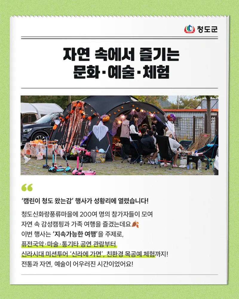 친환경 경북캠핑 축제 '캠린이 청도 왔는감'이