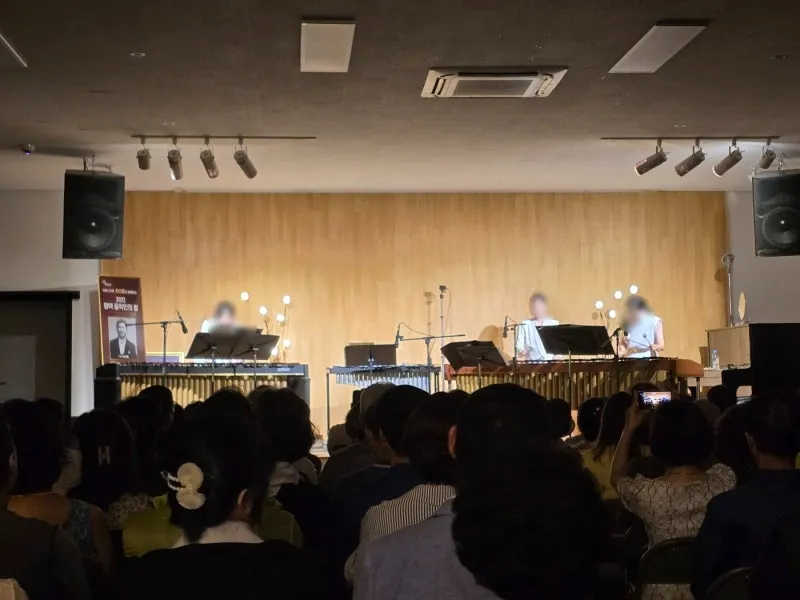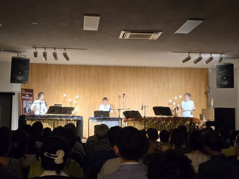 연주자는 1 마림바 기현정, 2 마림바 이시은, 베이스 마림바 이진경 님이었습니다.