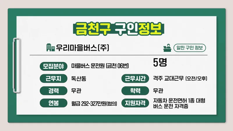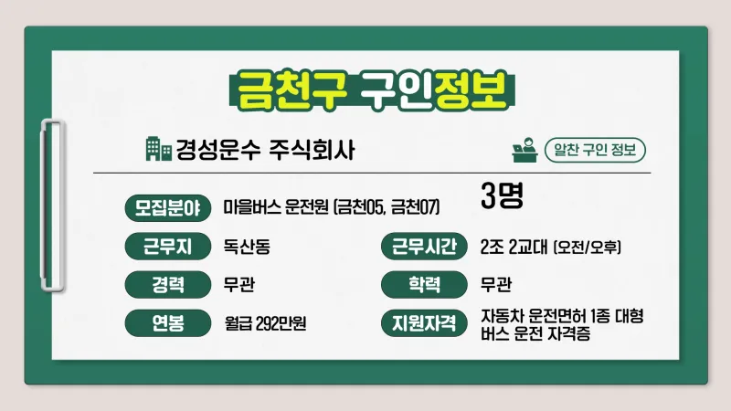 마을버스 운전원(금천 05번, 금천 07번)을 모집합니다.