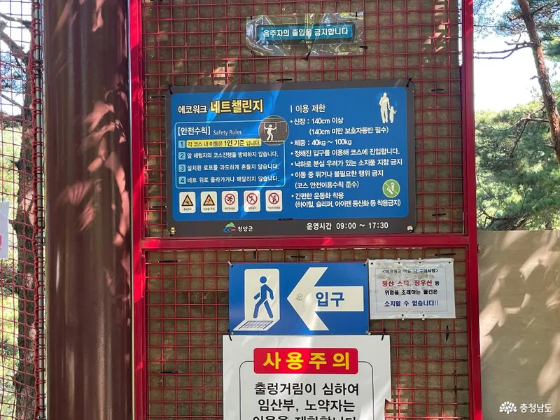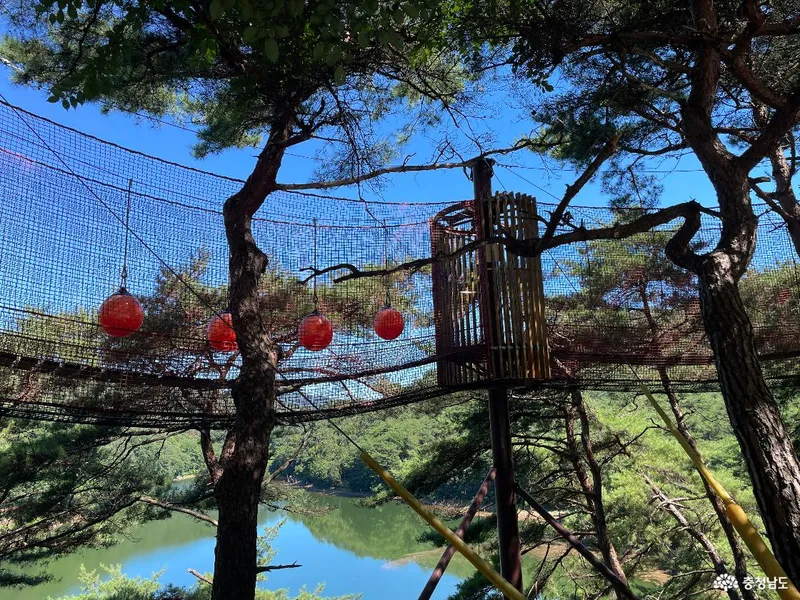천장호에서 아이들이 좋아할만한 어드벤처인 네트챌린지를 만들어 운영중이었습니다.