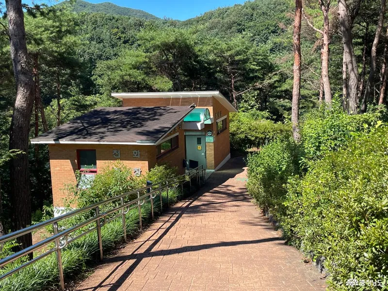 화장실은 입구 쪽 뿐만 아니라 중간에도 화장실이 있어 이용에는 큰 어려움이 없었습니다. 숲속 화장실인데도 불구하고 깨끗이 잘 유지되는 모습이었습니다.