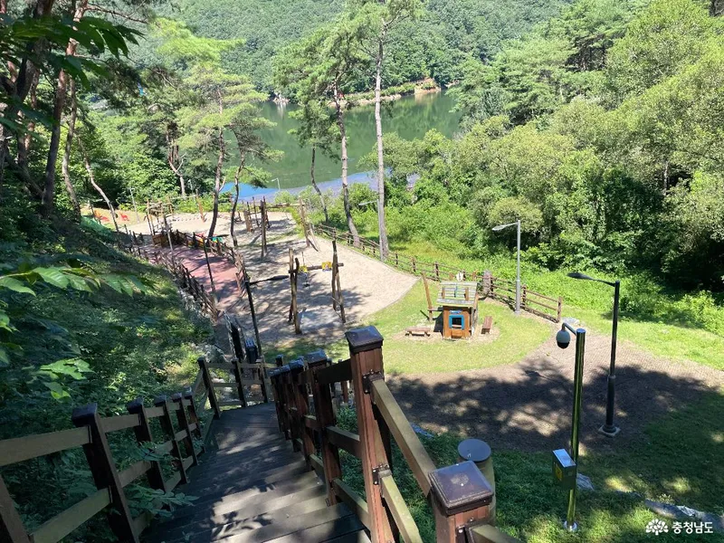 이곳은 청양에서 만들어 오픈한지 얼마 되지 않은 숲속놀이터입니다. 집트랙, 미끄럼틀, 징검다리 등 아이들이 좋아할만한 작은 놀이터 개념으로 보면 좋을 것 같습니다.