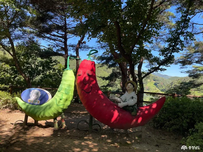 곳곳에 있는 포토존! 아이들이 좋아할만한 공룡, 사진프레임, 청양의 특산물인 고추모양까지 다양한 모양의 포토존으로 아이들도 좋아했습니다.