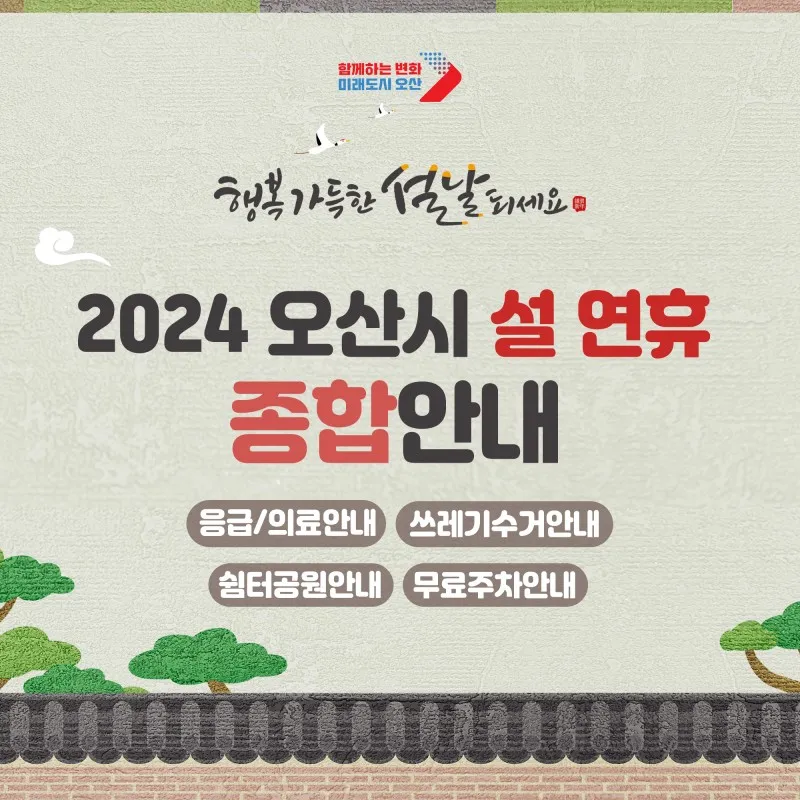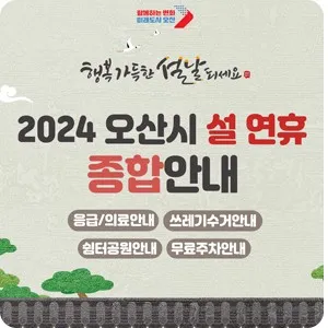 ▶ 오산시는 설 연휴 기간 중 아래와 같이 생활쓰레기 수거를 중단하오니, 시민 여러분께서는 불편하시더라도 연휴기간 중 생활쓰레기 수거일에 따라 생활쓰레기를 배출하시어 깨끗하고 쾌적한 설을 보낼 수 있도록 협조하여 주시기 바랍니다.