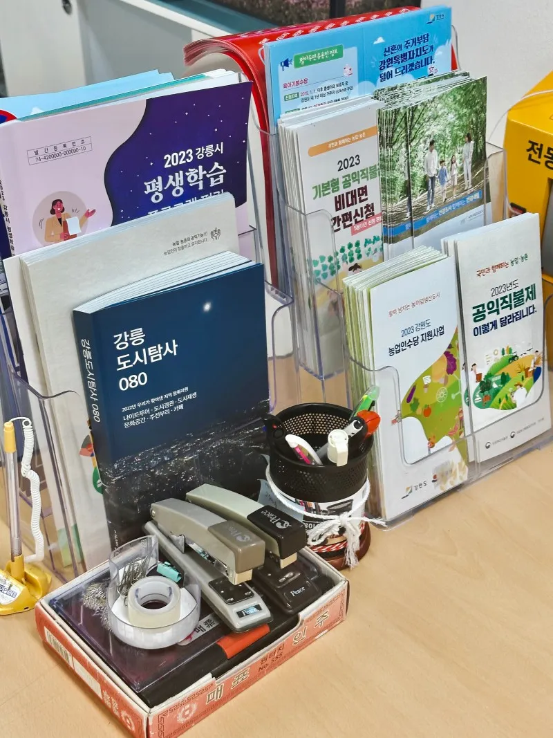 옆쪽 테이블에는 스테플러까지 마련되어 있어 인쇄물을 분류하여 집어서 갈 수 있었습니다.