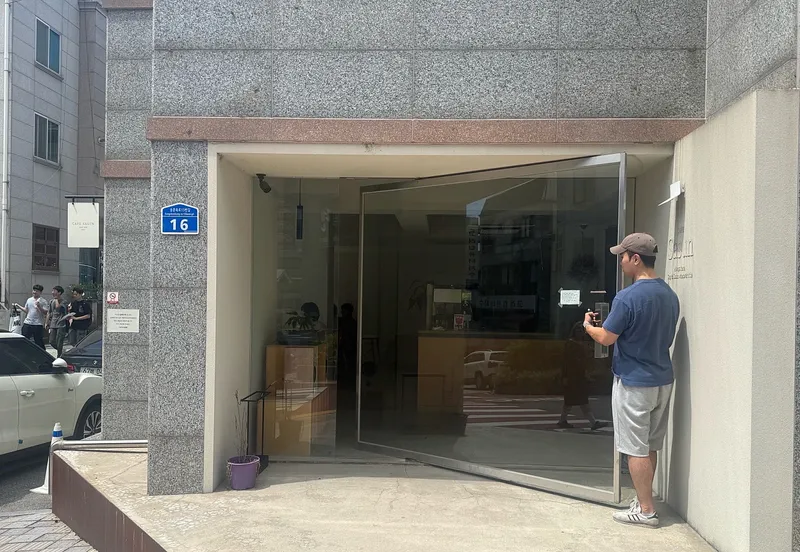카페 사선은 문부터 엄청 특이하고 독특한 카페입니다. 사진에서 보시다시피 문이 엄청 독특합니다. 문부터 시선이 가는 카페 사선은 간판이 크게 없어서 자칫하면 지나칠 수도 있는 카페입니다.