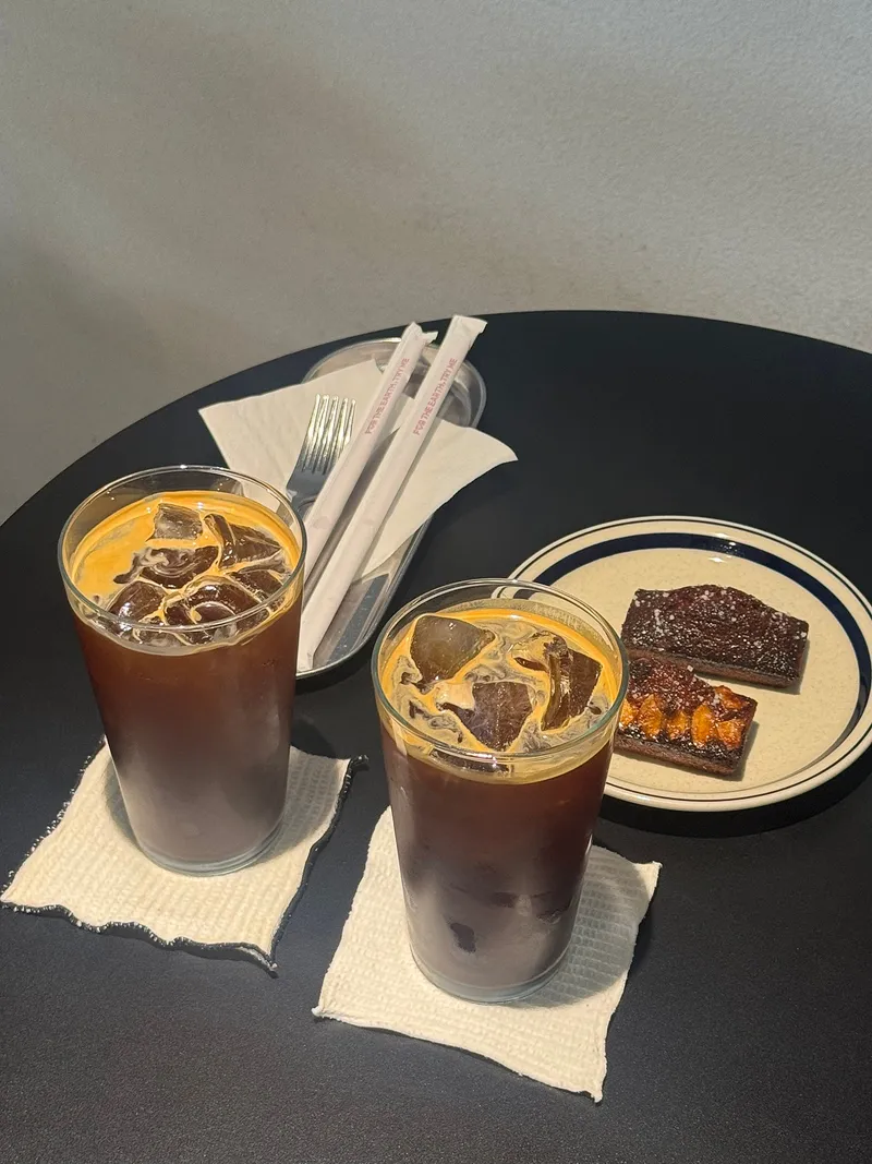 사선 카페는 아메리카노까지 진하며 고소하고 너무 맛있습니다. 각각 휘낭시에 겉에는 소금이 뿌려져 있습니다.