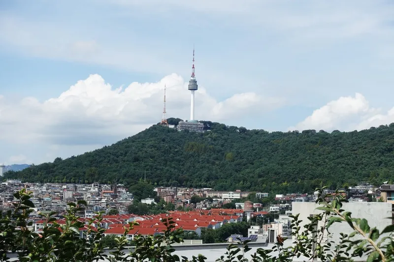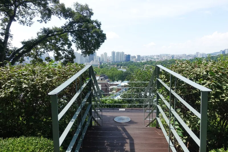 100년 이상 된 느티나무 아래 앉아 시원한 남산 뷰를 볼 수 있는 이태원부군당 역사공원입니다.