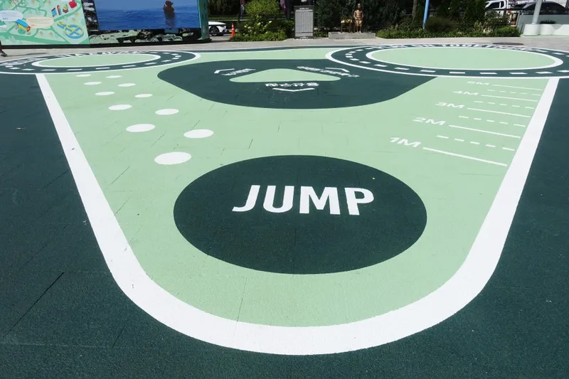 바닥은 녹색 계열의 미끄럼 방지 페인트를 칠해 놀이 공간으로 만들고