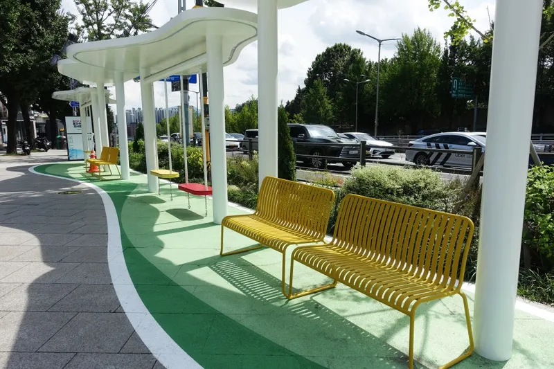 광장 곳곳에 곡선 형태의 그늘막과 의자를 설치해 구민 여러분의 쉼터를 조성했습니다.