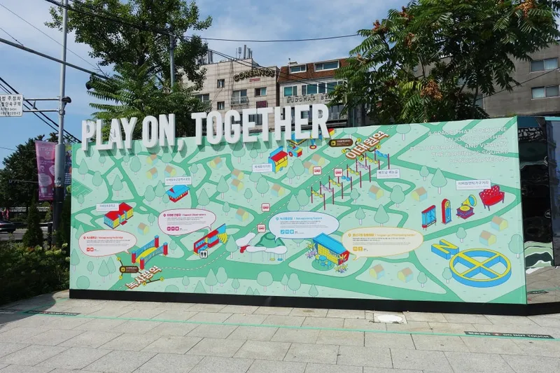 이태원의 관광명소들을 한눈에 보여주는 관광안내지도 그래픽과