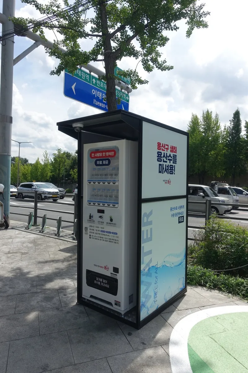 광장 어귀에는 7~8월에 운영되는 '용산수를 마셔용' 자판기가 있습니다.