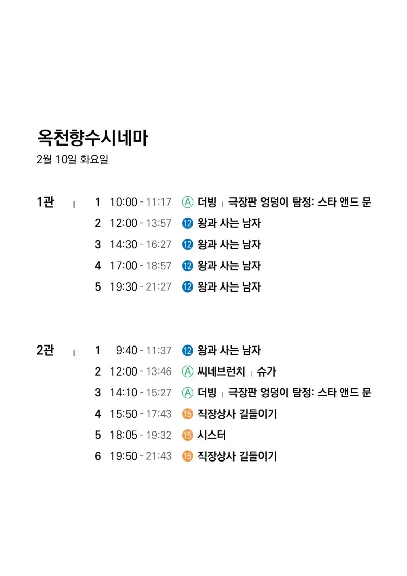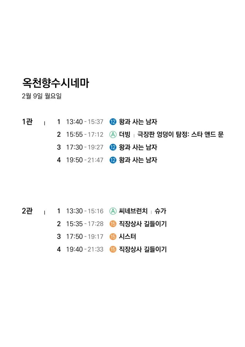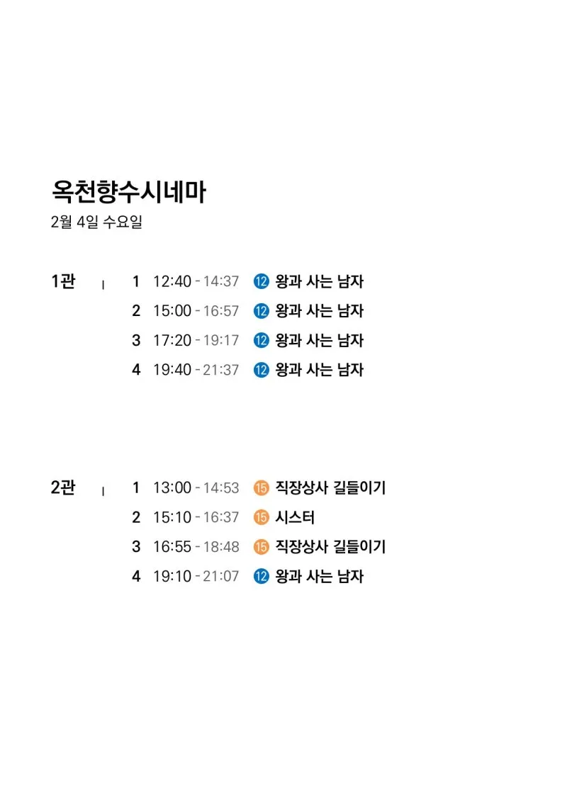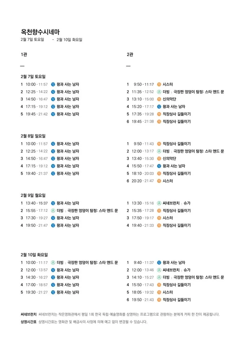 📽2월 4일(수)~2월 10일(화) 일일 상영 영화 시간표📽