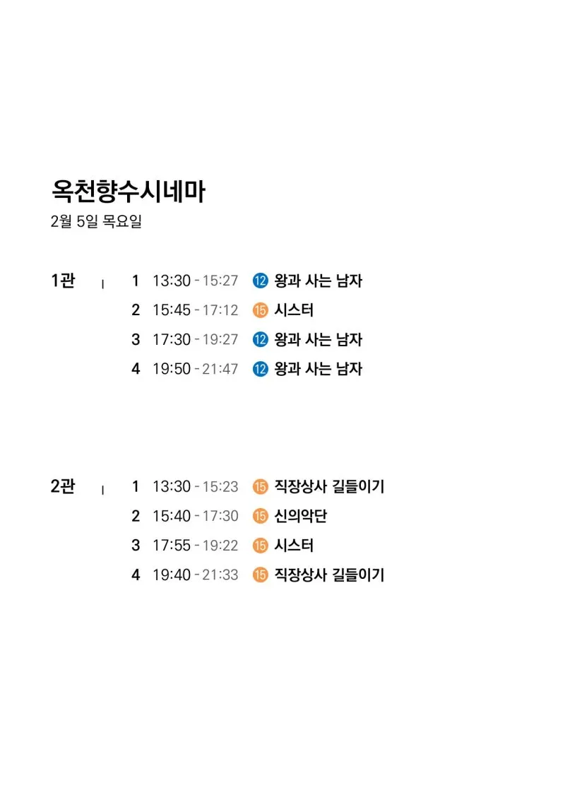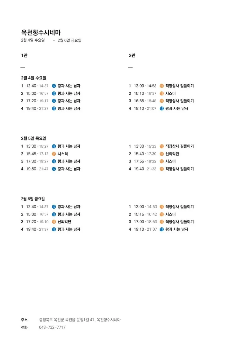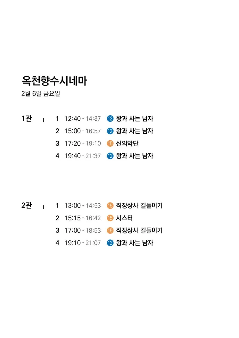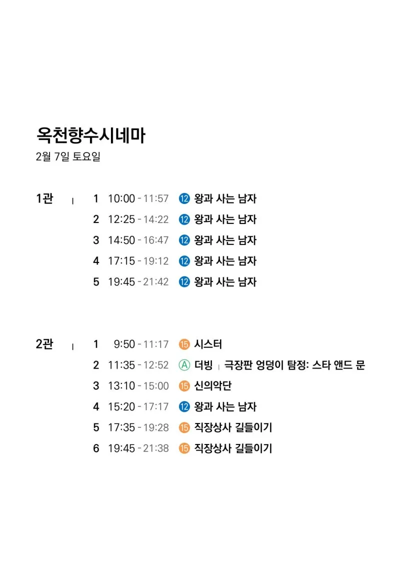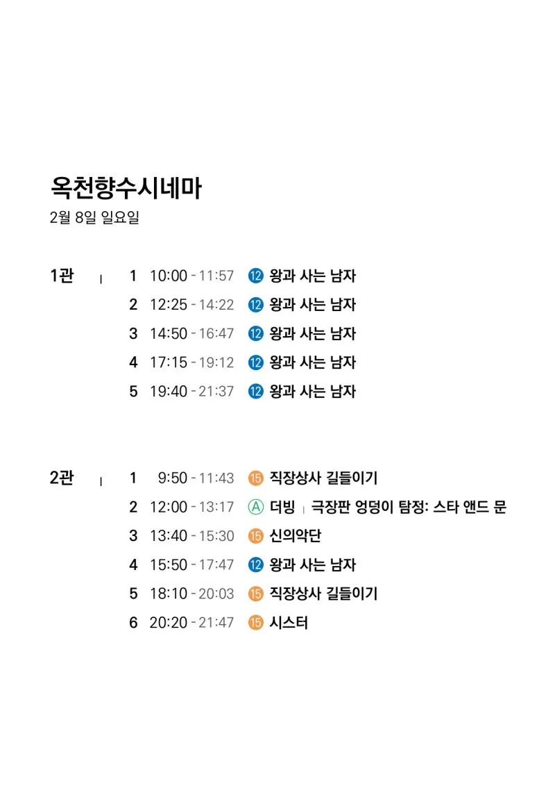 📽2월 4일(수)~2월 10일(화) 일일 상영 영화 시간표📽