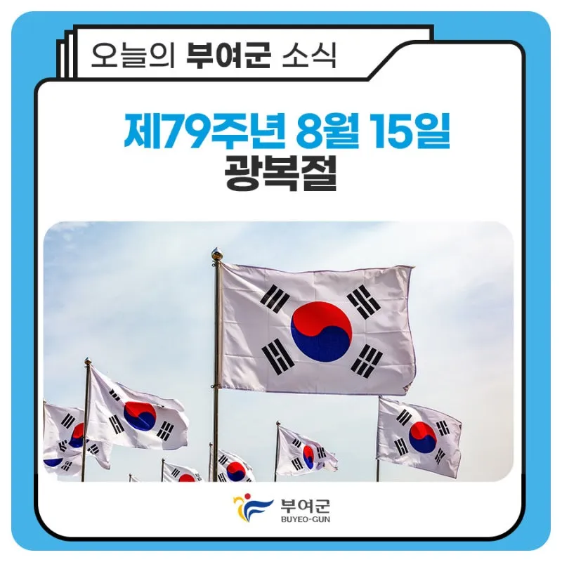 각 가정에서는 8월 15일 07:00 ~ 18:00까지 태극기 답니다.