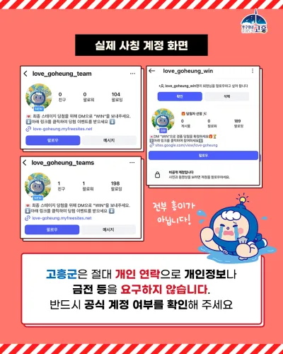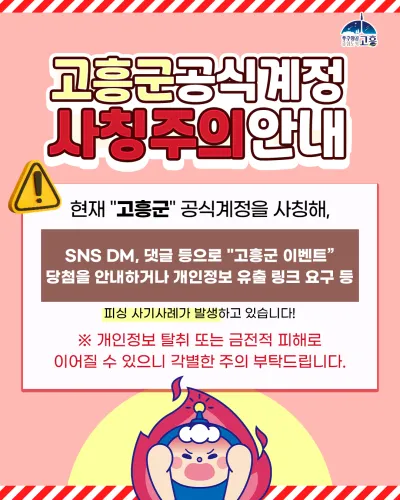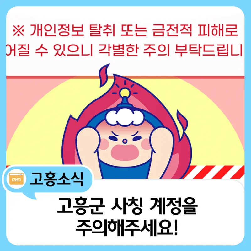 ⚠ 고흥군 공식 계정 사칭 주의 안내 ⚠