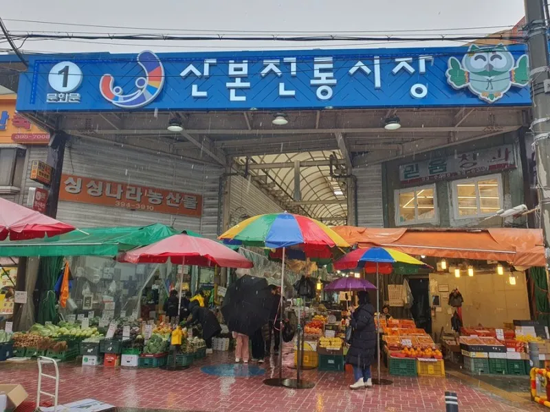 산본전통시장은 금정역에서 마을버스로도 갈 수 있지만 날이 좋을때는 걸어서도 충분히 갈 수 있는 거리입니다. 제가 방문한 날은 날씨가 좀 궂은 날이었는데, 마을버스 덕분에 산본전통시장앞까지 편하게 방문할 수 잇었습니다. 1-2번 마을 버스를 타고 3번째 정류장에서 하차하면 됩니다.