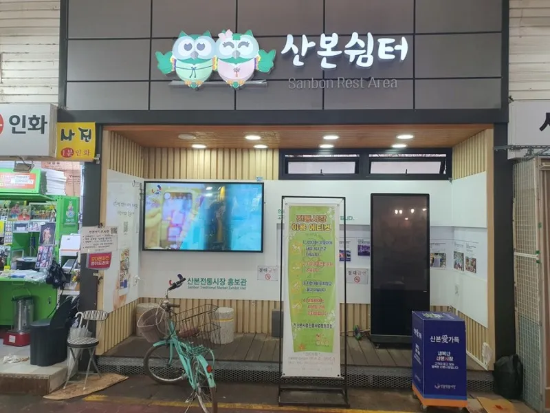또 하나의 장점은 산본전통시장내의 쉼터입니다. 전통시장의 특성상, 많은 이동을 하게 되면 노약자나 아이들은 쉽게 피곤해 질수 있는데요. 이제 체력이 부족한 분들은 장을 많이 보고 잠깐 쉬어갈 수 있는 공간이 생겨 안심할 수 있게 되었습니다.