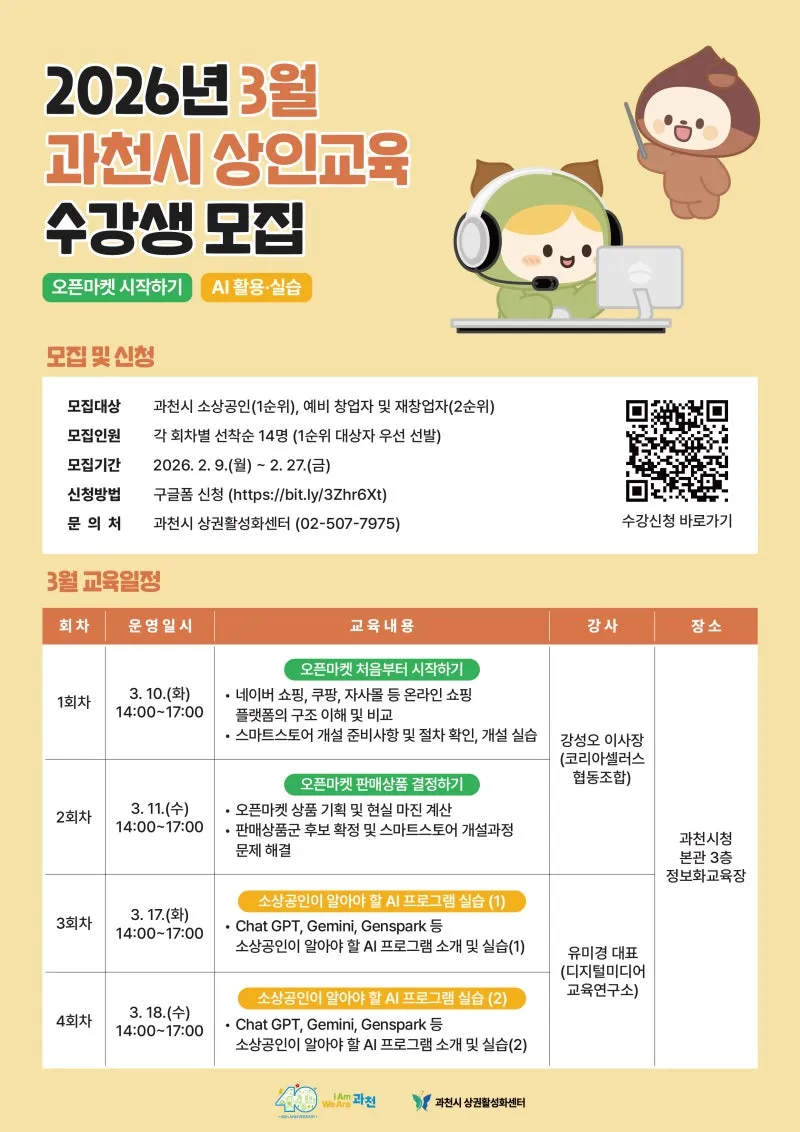 2026 3월 '과천시 상인교육' 수강생을 모집합니다