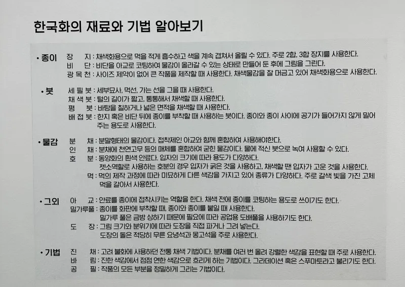 2층으로 가기 전에 '한국화의 재료와 기법'을