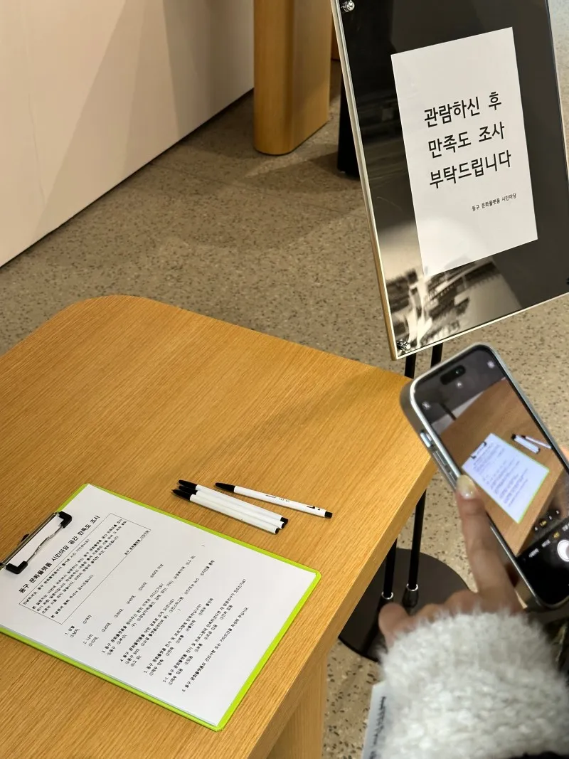 1층으로 내려와 잠시 쉬면서 설문조사를 끝으로 나왔습니다✏️