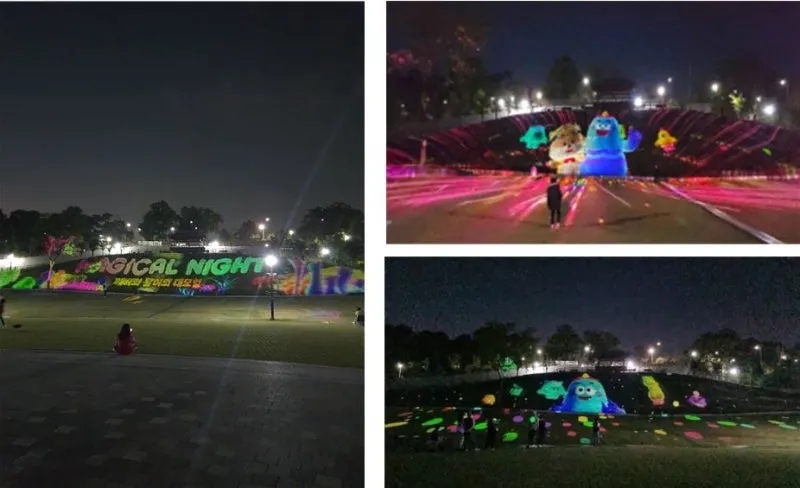 밤에는 화려한 빛의 미디어아트를 관람할 수 있는