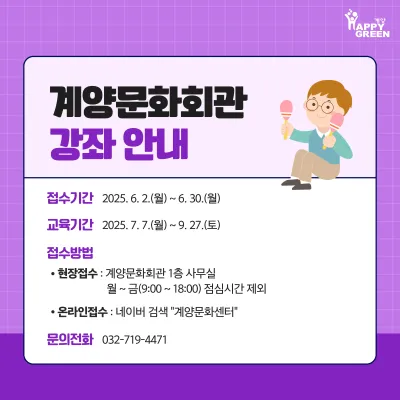 * 온라인 접수: 네이버 검색 "계양문화센터"