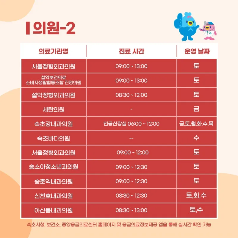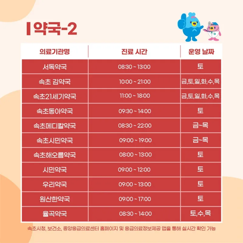 🌕10.4.(토) 속초시 내 병‧의원 및 약국 운영 현황 안내🍂