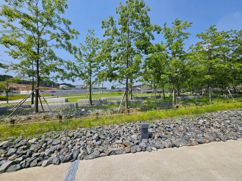 또한, 입구 옆에는 현대적인 디자인의 화장실이 마련되어 있어 관람 전후로 편리하게 이용할 수 있었고, 주변으로는 잔디광장과 나무들이 어우러진 조경 공간이 시원한 개방감을 주었습니다. 첫 발걸음부터 ‘여유 있게 역사와 마주할 수 있는 곳’이라는 인상을 받았는데, 다음 글에서는 어린이전시실을 포함한 실내 체험 공간과 전시 내용을 본격적으로 소개해 드리겠습니다.