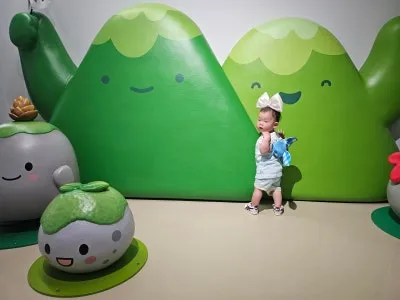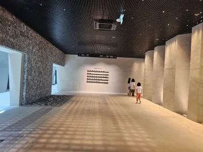 기념관 내부로 들어서니, 외부의 탁 트인 풍경과는 또 다른 차분하고 웅장한 분위기가 펼쳐졌습니다. 높은 천장과 은은한 조명, 그리고 자연석과 콘크리트를 활용한 전시실 디자인이 역사적 무게감을 고스란히 전달해 주었습니다. 특히 어린이전시실에 들어서자마자, 부드러운 색감과 귀여운 캐릭터들이 반겨주어 아이들의 표정이 환해졌습니다. 초록빛 산과 바위 캐릭터가 있는 포토존은 방문 기념사진을 남기기 딱 좋은 곳이었고, 전시실 곳곳에 배치된 체험형 코너가 아이들의 호기심을 자극했습니다.