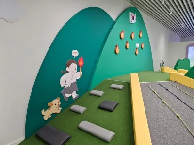 전시실 한쪽에는 작은 언덕과 로프가 설치되어 있어, 마치 봉화를 올리기 위해 산을 오르는 듯한 체험을 할 수 있고, 바닥과 벽에 투영되는 인터랙티브 영상 속에서는 아이들의 움직임에 따라 꽃이 피고 캐릭터가 반응하는 등 즐거운 요소가 가득합니다. 단순히 보는 전시를 넘어, 몸으로 직접 느끼고 참여하며 역사를 배우는 공간이기에, 아이들은 자연스럽게 독립운동의 의미를 마음에 새기게 됩니다.