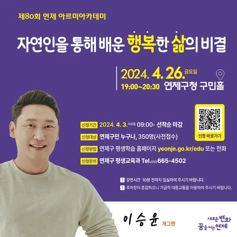 제80회 연제아르미아카데미 연제구 평생교육과 ☎051-665-4502 |