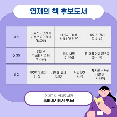 2024년 연제의 책에 투표하세요 연제구 평생교육과 ☎051-665-5514 |