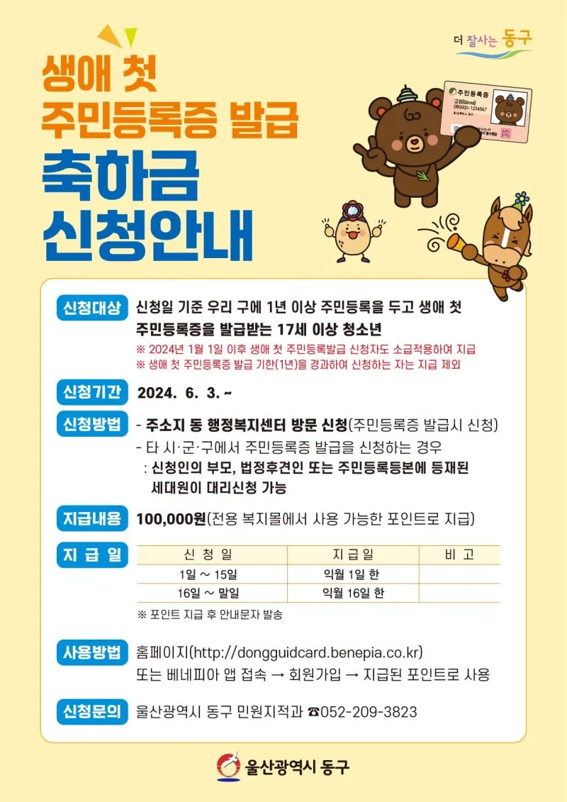 #울산_동구 #주민등록증 #첫_발급 #축하금