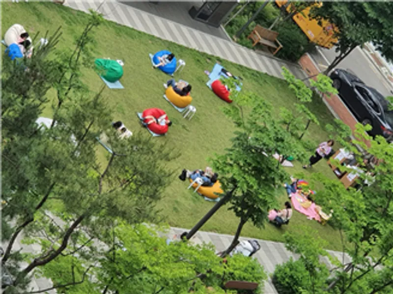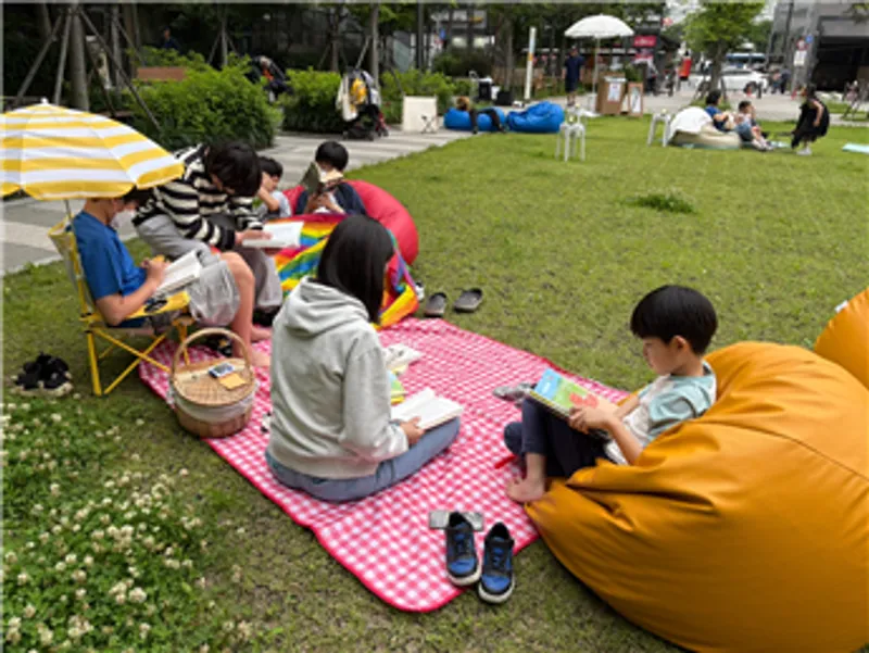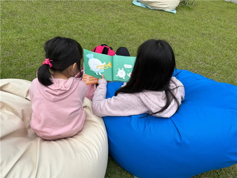 빈백, 벤치, 돗자리에서 자유롭게 책 읽기