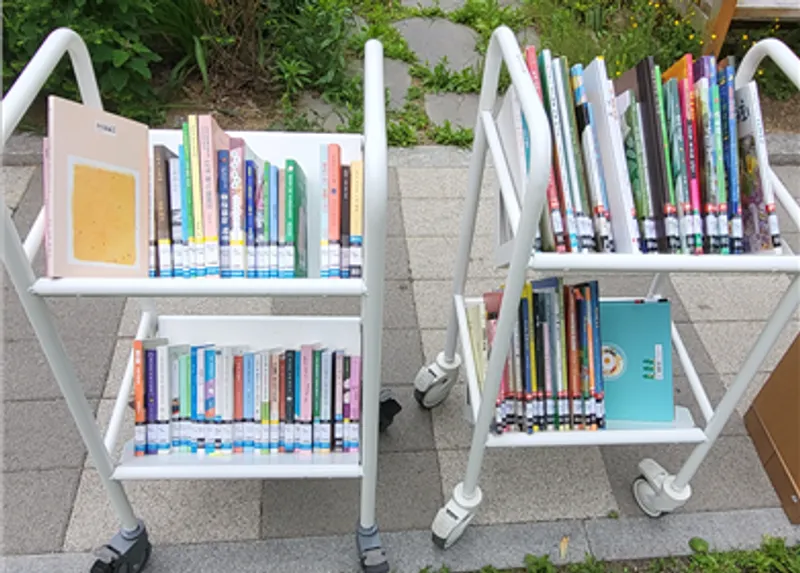 야외 도서관을 찾아오는 어린 친구들을 위해