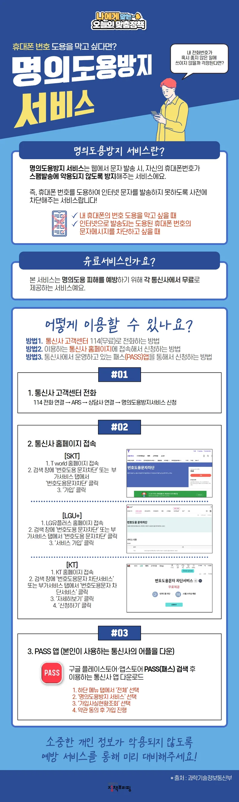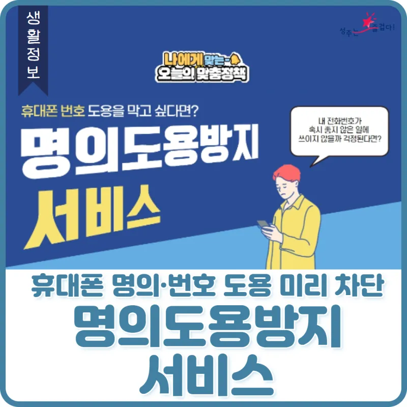 #성주 #성주군 #성주군청 #성주는즐겁다 #대한민국정책브리핑 #정책브리핑 #문화체육관광부 #국민소통실 #휴대폰번호도용방지 #명의도용방지서비스 #나에게맞는오늘의맞춤정책 #오늘의맞춤정책 #SKT #LGU #KT #PASS앱 #명의도용방지