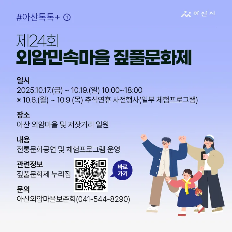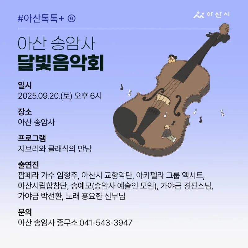 티켓예매 바로가기 → 아산문화재단 세계와 소통하는 길은 문화와 예술입니다. Asan Foundation For Arts and Culture 우리동네 문화이야기 All 2025 온마음생활문화센터 하반기 문화강좌 개강 2025 온마음생활문화센터 하반기 문화강좌 개강 2025-09-08 ~ 2025-11-30 / 09:00 - 18:00 2025 현충사 달빛야행 푸드트럭 운영단체 모집 공고 2025 현충사 달빛야행 푸드트럭 운영단체 모집 공고 2025-10-18 ~ 2025-10-19 / 15:00~22:00 이야기 속 아산 : 감각으...