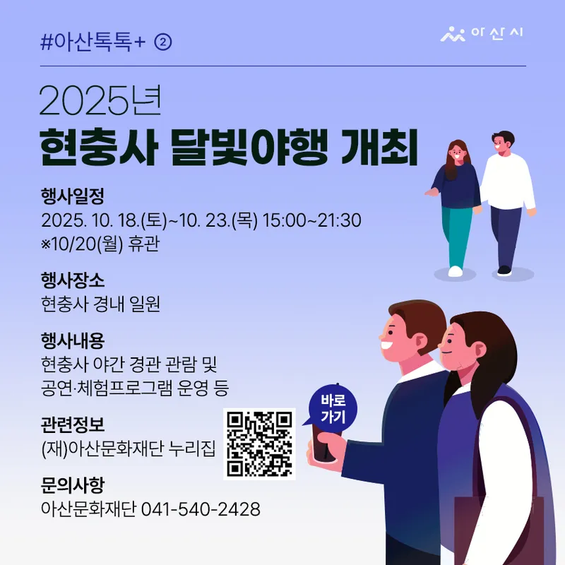 행사내용: 현충사 야간 경관 관람 및 공연·체험프로그램 운영 등