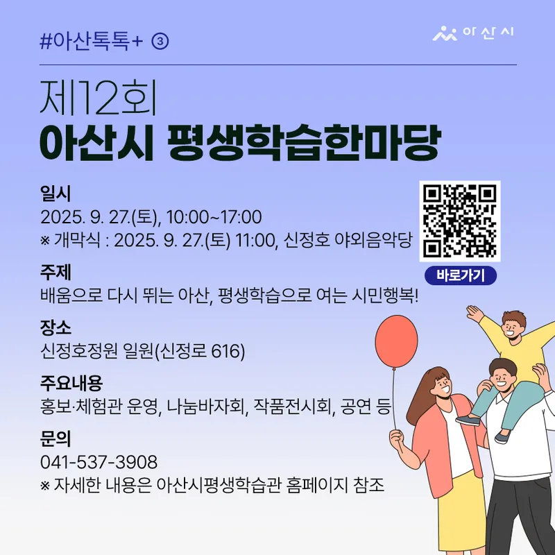 주제: 배움으로 다시 뛰는 아산, 평생학습으로 여는 시민행복!