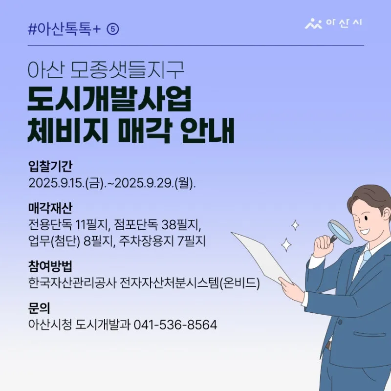 아산 모종샛들지구 도시개발사업 체비지 매각 안내