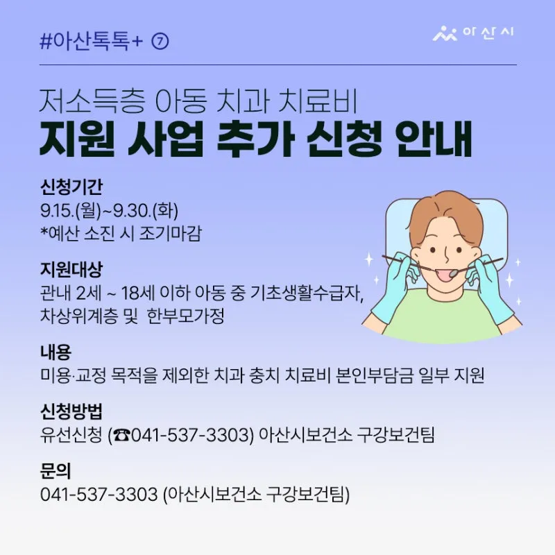 연락처 : 041-537-3303 (아산시보건소 구강보건팀)