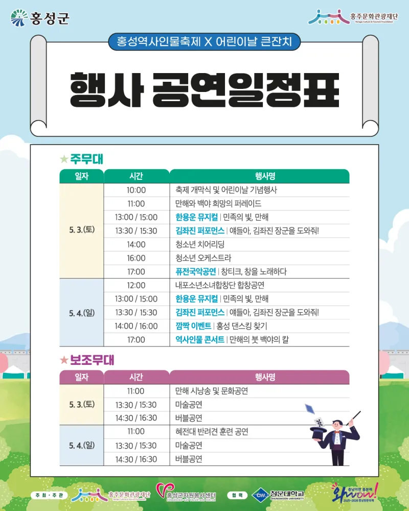 어린이날 큰잔치와 함께하는홍성역사인물축제공연일정표부터 프로그램 미리보기!