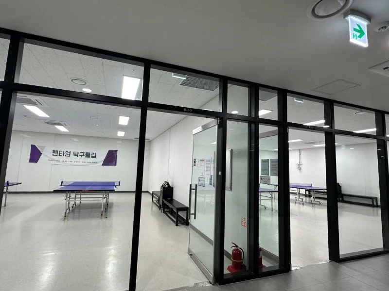 과천펜타원 빌딩 내에는 누구나 무료로 탁구를 즐길 수 있는 공간인 '펜타원 탁구클럽'이 마련되어 있습니다.