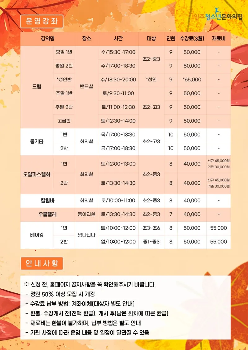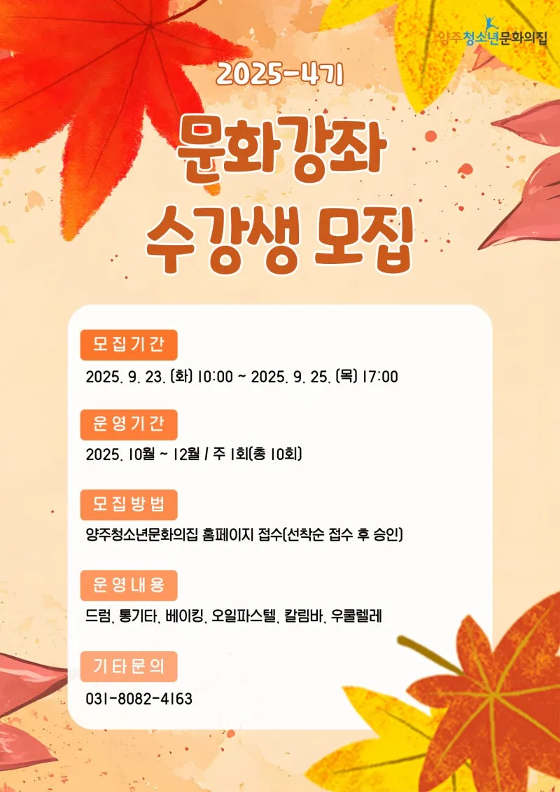 양주 청소년 문화의 집, 『2025년 4기 문화강좌』 수강생 모집