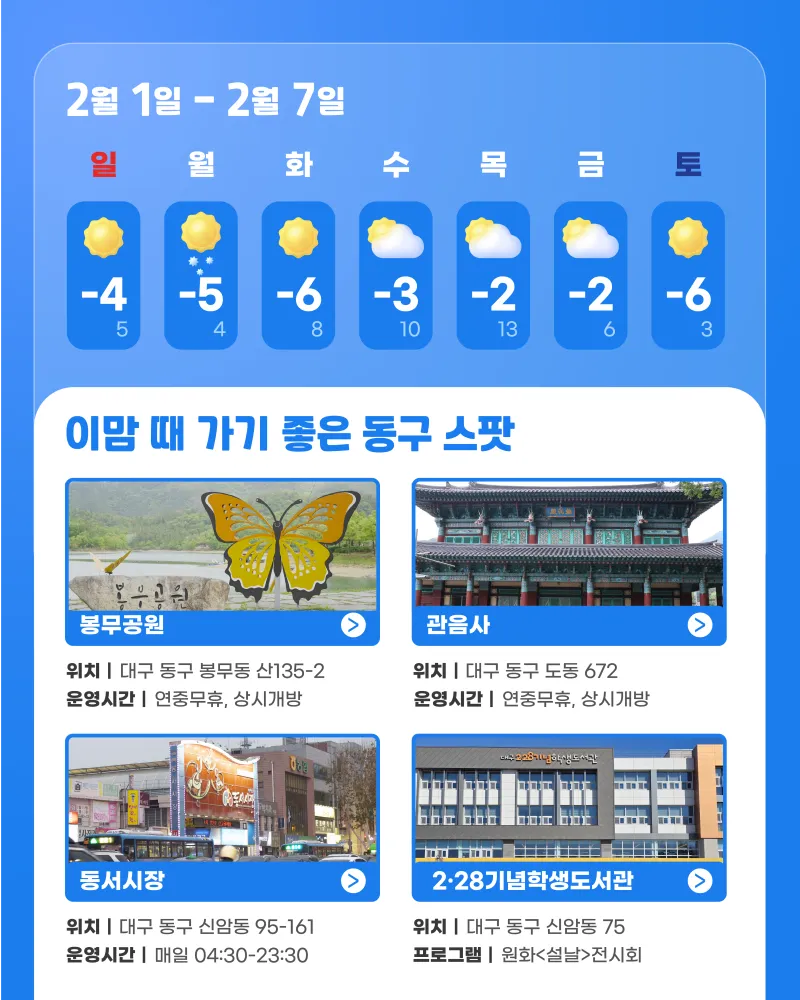 동구르르 픽! 2월 1주차 대구 동구 주간 날씨 가이드