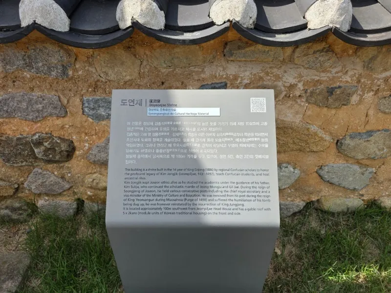 이 건물은 점필재 김종직의 높은 뜻을 기리기 위해