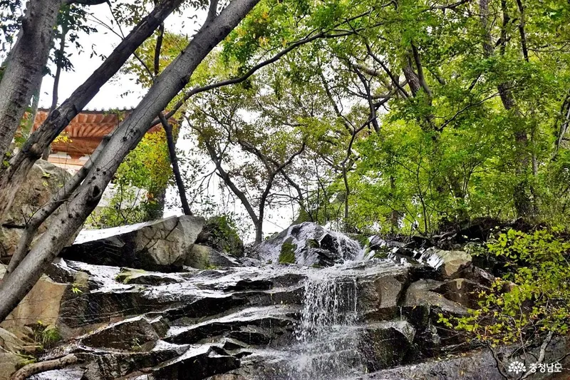 10월 길었던 연휴에 비가 자주 내리면서 울창한 숲 사이 암반지대에는 작은 폭포가 형성되었습니다. 하늘이 감추었다는 사찰이 더욱 신비로워졌습니다.