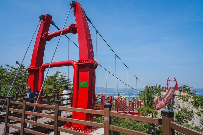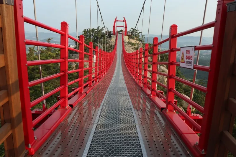 가을바람에 구름다리가 흔들리더라도 안심하세요! 백화산 구름다리는 무려 570명을 수용할 수 있을 정도로 안전하게 설계되었습니다. 무서운 마음은 잠시 내려두고 구름다리에서 펼쳐지는 태안의 풍경을 즐기다 보면 가슴이 뻥 뚫리는 청량감이 느껴진답니다.